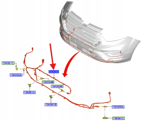 PRZEWÓD CZUJNIK PARKOWANIA TRANSIT TOURNEO 2012- 2451106 _ JK2T-15K867-DC
