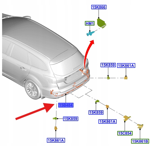 PRZEWÓD CZUJNIKA PARKOWANIA TYŁ FOCUS ST 2014- OE 1891040 _ F1ET-15K868-SDD