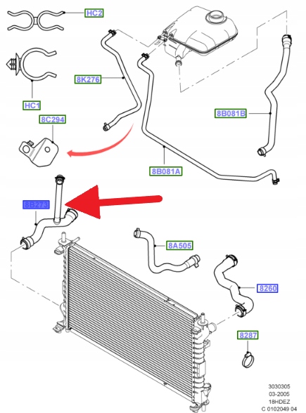 PRZEWÓD DOLNY CHŁODNICY 1.8 ZETEC FORD CONNECT 04- 1365998 _ 4T16-8B273-GA
