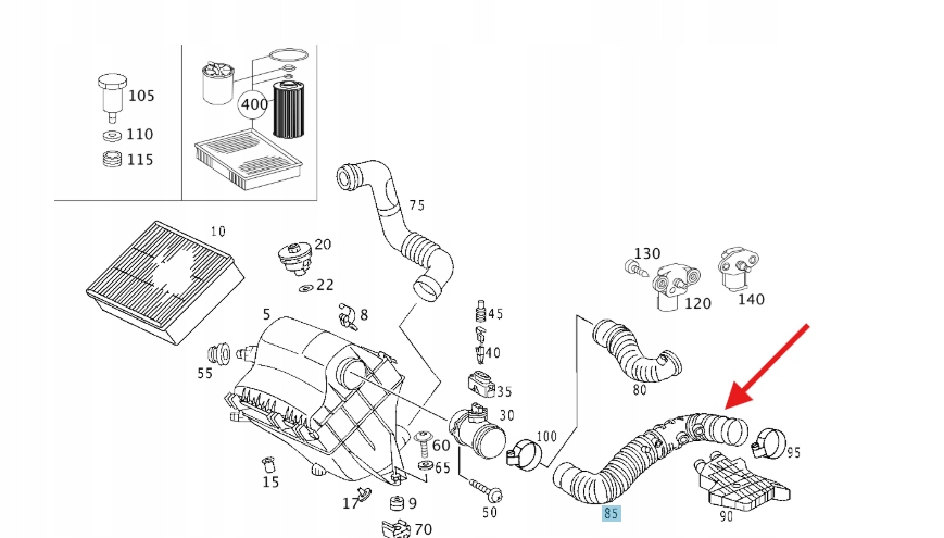 PRZEWÓD DOLOTU POWIETRZA MERCEDES SPRINTER W901 - W904 OE A9015285182