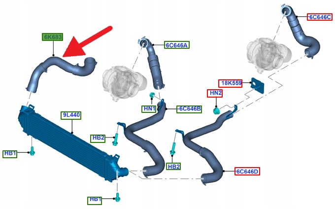 PRZEWÓD INTERCOOLERA 2.0 TDCi KUGA FOCUS 2011- OE 1827369 _ AV61-6K863-AE