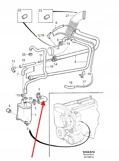- PRZEWÓD ODMY 2.0 2.3 2.4 B5 VOLVO S80 XC90 2003- XC70 S60 V70 OE 1271653