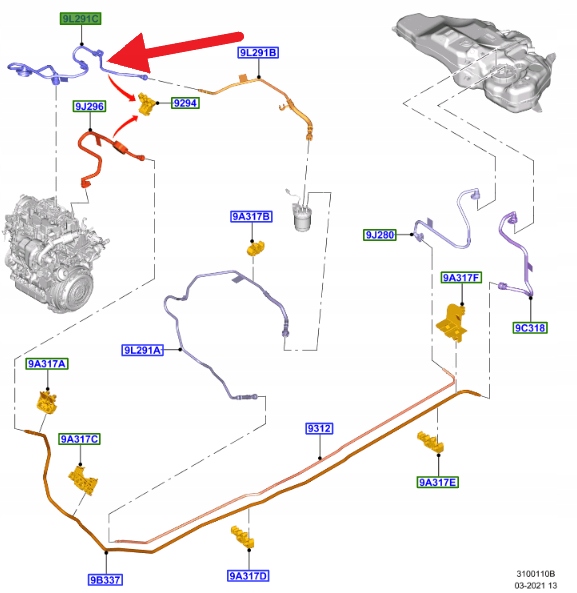 PRZEWÓD PALIWA 1.5 TDCi FORD FOCUS 2018- OE 2469941_ JX61-9J328-DE