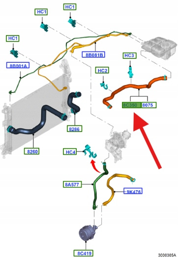 PRZEWÓD WODY 1.0 EB FORD FOCUS C-MAX 2012- 2014 OE 1785650 _ CV61-8C351-VC