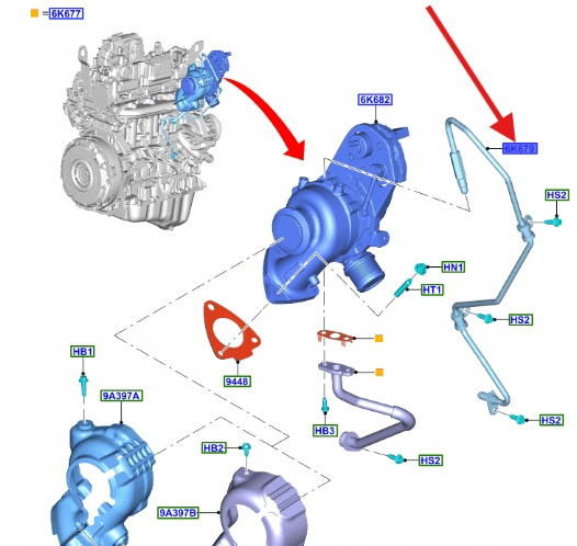 PRZEWÓD ZASILAJĄCY OLEJ TURBINY TRANSIT 2.0 Ecoblue 2361354 _ KK3Q-6K679-BA