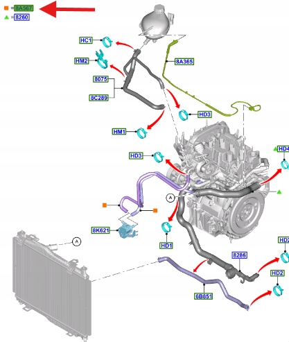 PRZEWODY DODATKOWEJ POMPY WODY 1.0 ECOSPORT 2017- 2218657 _ GN11-8B550-BD