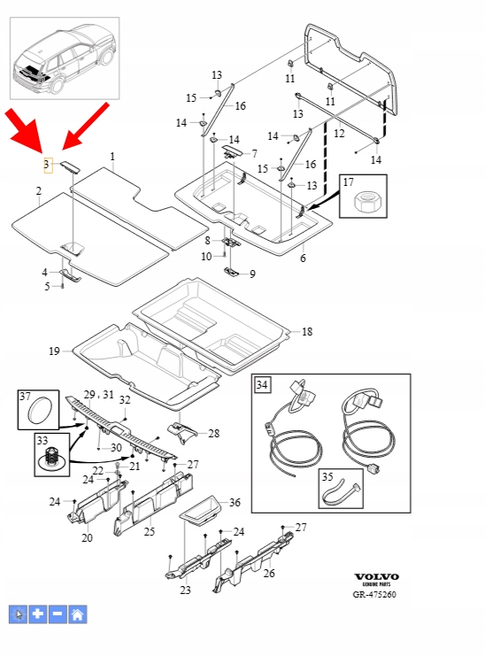 RĄCZKA PODŁOGI BAGAŻNIKA VOLVO XC90 2016- V90 V60 OEM/OE 39832268