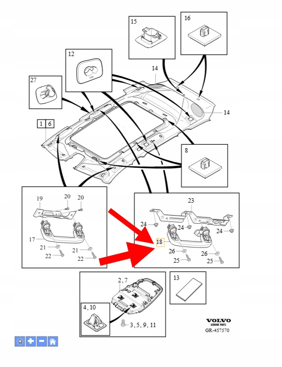 RĄCZKA PODSUFITKI TYŁ VOLVO XC90 2016- S90L V40 OEM/OE 39834465