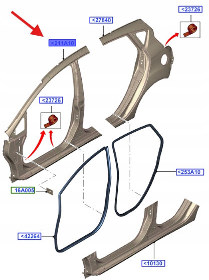 RAMA DRZWI PRAWA FORD FIESTA MK7 2008- 1553681 _ 8A61-A278A98-AA