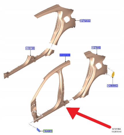 RAMA DRZWI PRAWY PRZÓD FORD FOCUS 2018- OE 2206865 _ JX7B-A278A98-AA