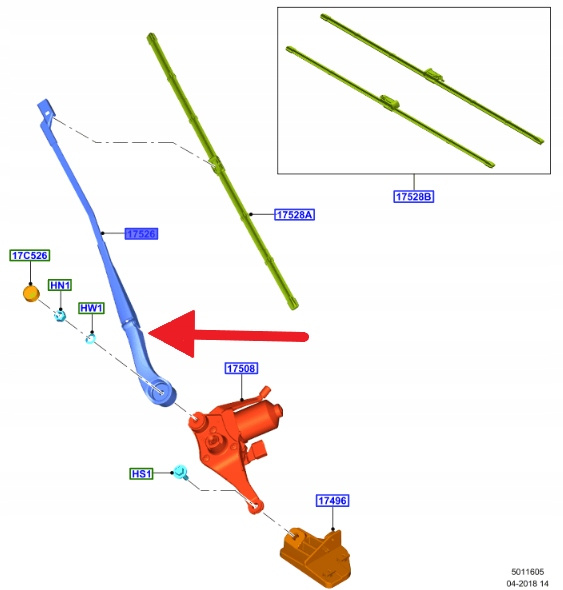 RAMIĘ PRAWEJ WYCIERACZKI PRZÓD FORD CUSTOM 2012- 1893041 _ BK21-17526-BC