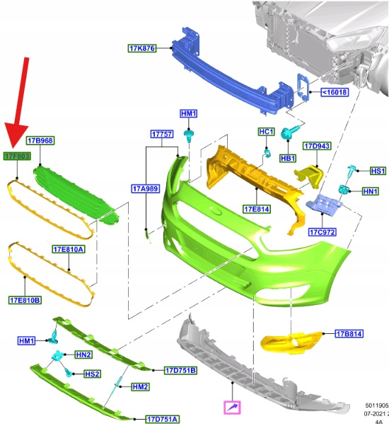 RAMKA KRATKI ZDERZAKA FORD TRANSIT COURIER 14- OE 1848612 _ ET76-17F816-AA
