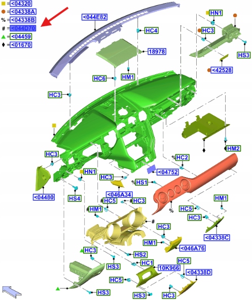 RAMKA ZEGARÓW FORD MUSTANG 2017- 2020 OE 2182247 _ HR3V-63044D70-AB3ZHE