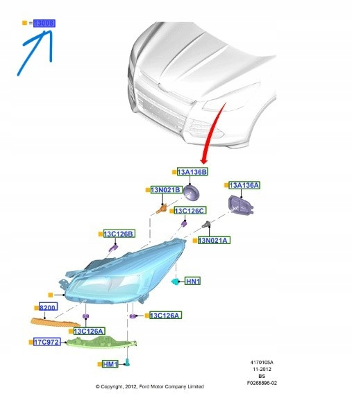 REFLEKTOR PRAWY PRZÓD FORD KUGA Mk2 2012- 1808348 _ CV44-13W029-AE