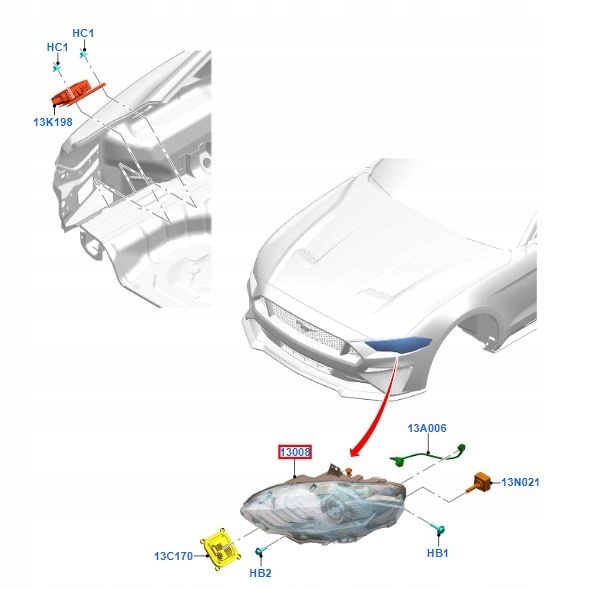 REFLEKTOR PRZEDNI LEWY FORD MUSTANG Mk6 2017- 2305308 _ JR3B-13006-CJ