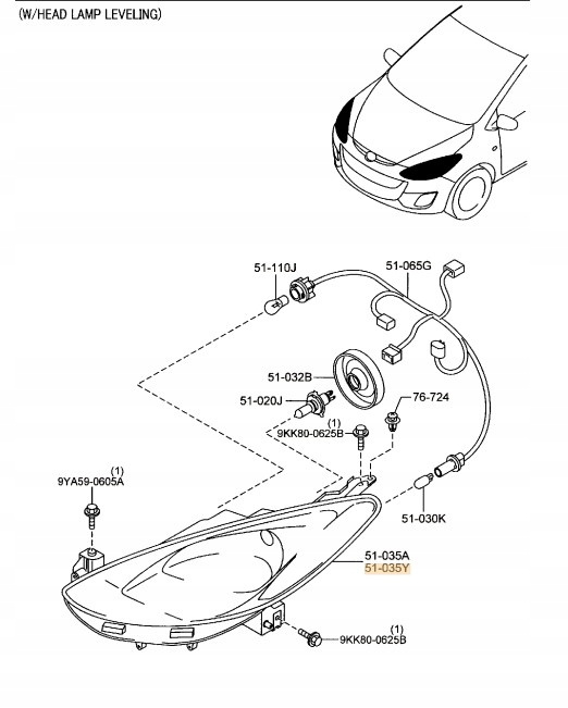 - Reflektor przedni lewy Mazda 2 - 2010_DF95510L0F