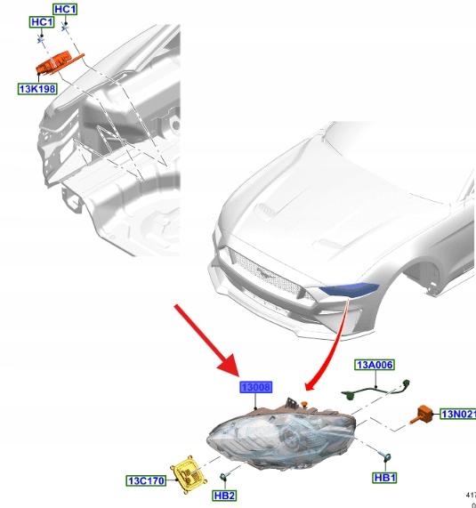 REFLEKTOR PRZEDNI PRAWA STRONA FORD MUSTANG 2017- 2305307 _ JR3B-13005-CK