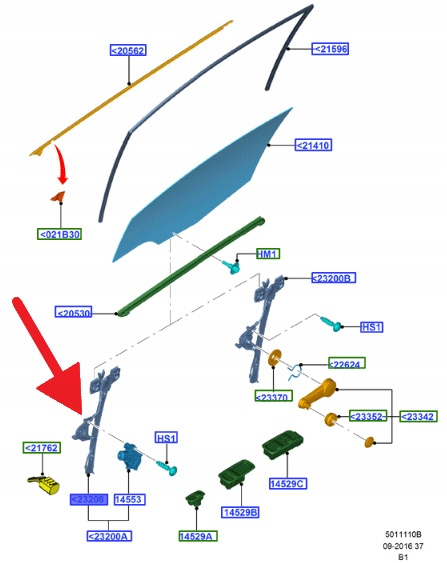Regulator podnoszenia szyby prawy przód - bez silnika