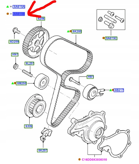 ROZRZĄD Z POMPĄ WODY FORD 1.6L TDCi FIESTA FUSION_2008684_3M5Q-8B596-AB