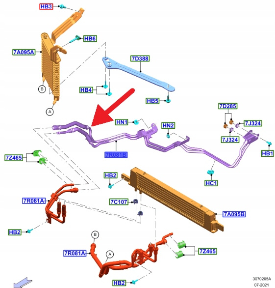 Rura chłodząca olej automatycznej skrzyni 10-biegowej 10R80 - 2.3L EcoBoost