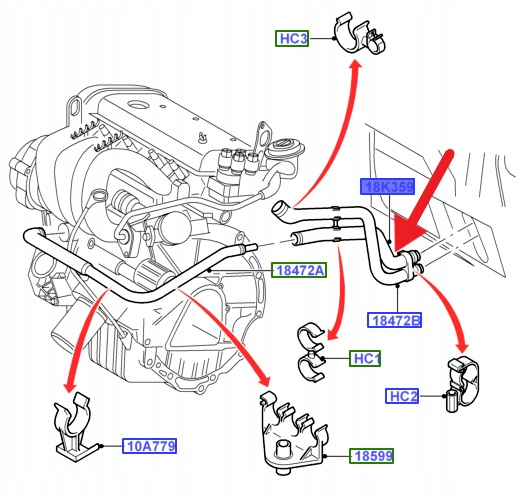 RURA WĄŻ WODY 1.6L DURATEC FORD FOCUS 1998- OE 1134873 _ 98AB-18K359-EL