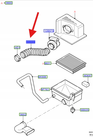 RURA WLOT POWIETRZA BENZYNA FOCUS TRANSIT 2002- OE 1315613 _ 98AB-9R504-GB