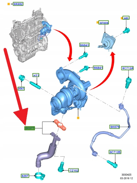 RURKA POWROTU OLEJU TURBO FORD OE FIESTA 2008-2019 1697381 AV6Q-6K677-BA