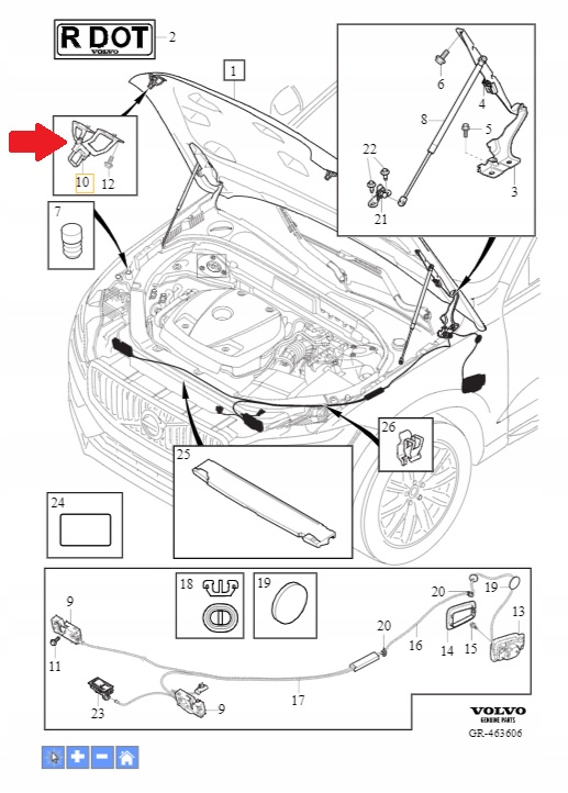 - Rygiel zamka maski lewy Volvo OE 32219336