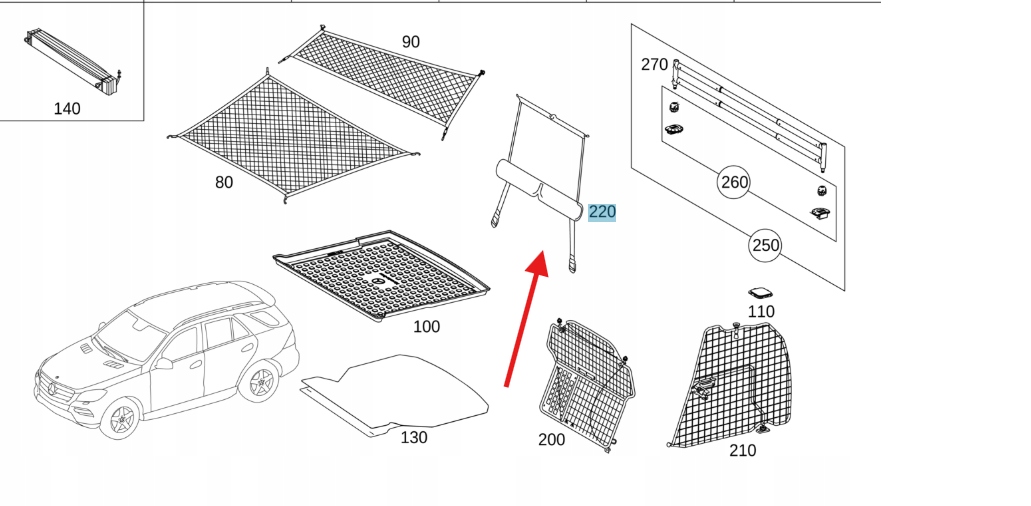 SIATKA ODDZIELAJĄCA PRZESTRZEŃ BAGAŻOWĄ MERCEDES W166 OE A16686032009E31