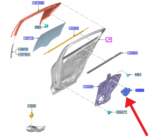 SILNICZEK SZYBY PRAWY FORD FOCUS 2018- OE 2690025 _ JX7B-14A389-BF