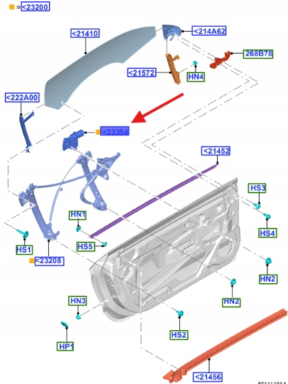 SILNIK PODNOSZENIA SZYBY PRAWA FORD MUSTANG 2015- 2225149 _ FR3B-14A365-AD