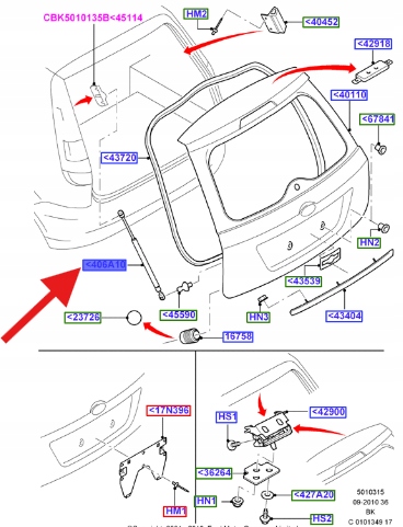SIŁOWNIK KLAPY TYŁ FORD FIESTA 2002- 2008 OE 1460415 _ 2S51-B406A10-AD