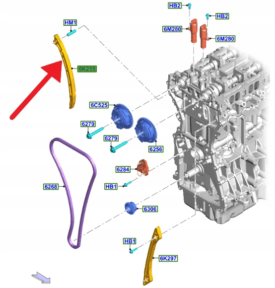 ŚLIZG ŁAŃCUCHA ROZRZĄDU 2.0 EB MONDEO EDGE KUGA 20- 2250476 _ K2GE-6K255-AA