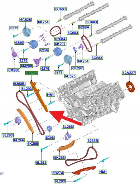 ŚLIZG ŁAŃCUCHA ROZRZĄDU 5.0 FORD MUSTANG 2015- OE 5053709 _ BR3E-6M256-BA