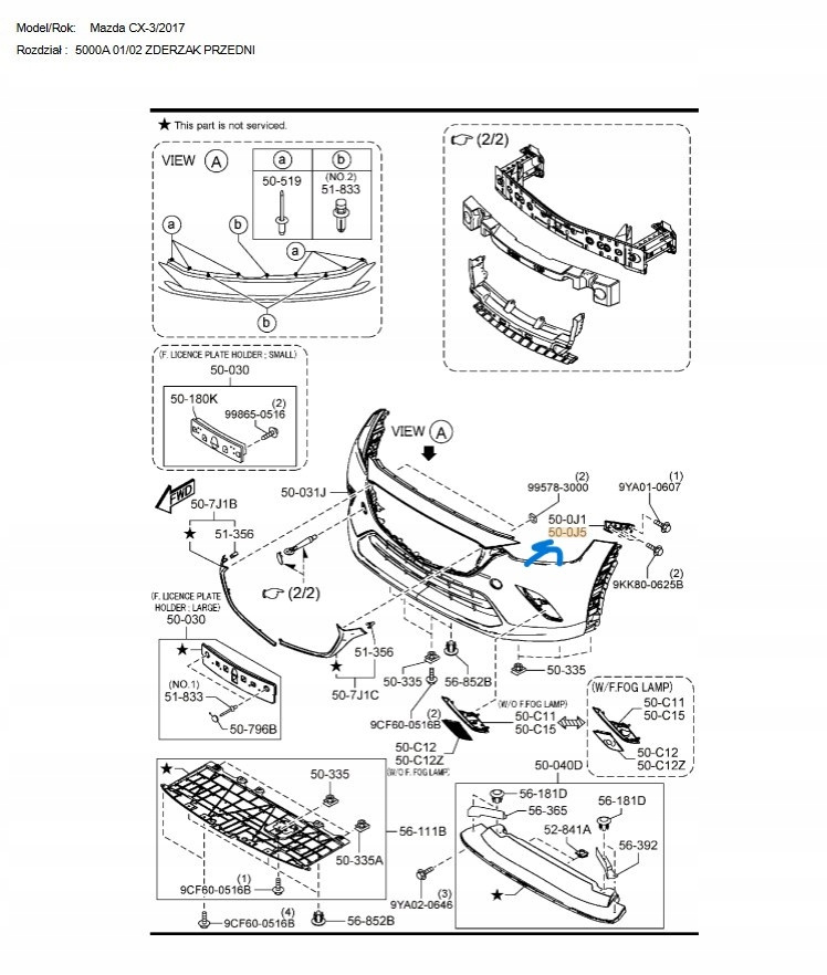 Ślizg lewy zderzaka przedniego - Mazda CX-3 DK_D10J500U1A