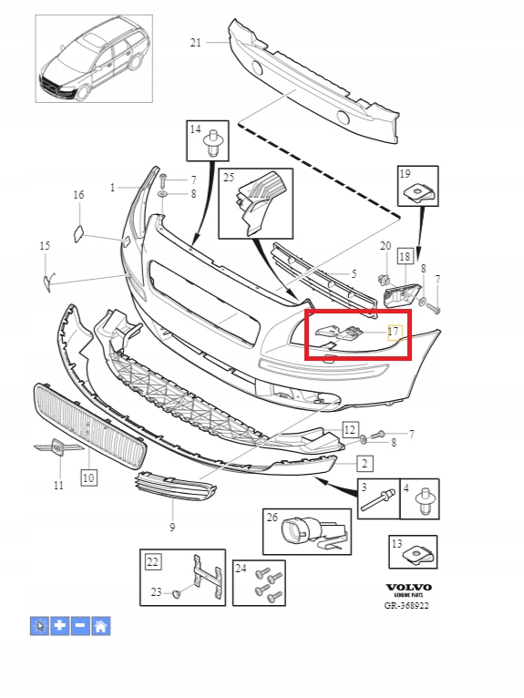 Ślizg mocowanie reflektora Volvo OE 30678261 Lewa strona
