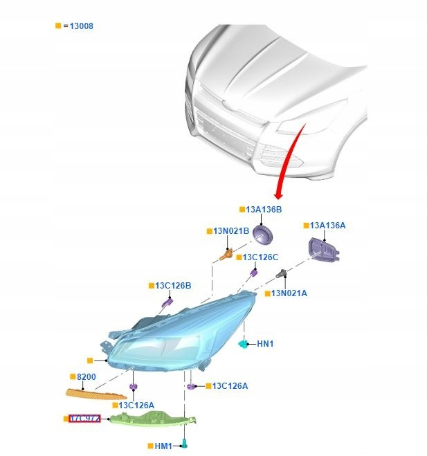 ŚLIZG POD LAMPĘ PRAWY PRZÓD FORD KUGA Mk2 2012- 5238310 _ CV44-17E762-BA
