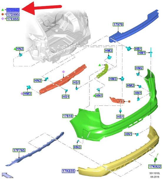 ŚLIZG TYLNEGO ZDERZAKA LEWY FORD EDGE 2018- OE 2411026 _ KT4B-17E851-AE
