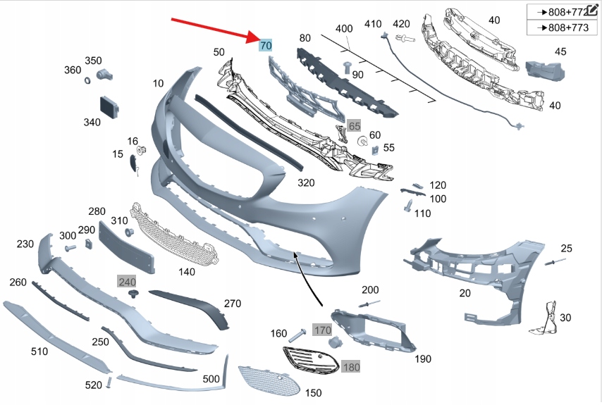 ŚLIZG UCHWYT ŚRODKOWY ZDERZAKA PRZÓD MECEDES C klasa W205 OE A2058853765