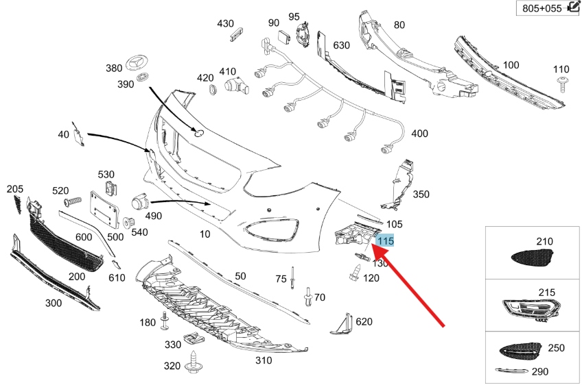 ŚLIZG UCHWYT ZDERZAKA PRAWY PRZÓD MERCEDES B klasa W246 OE A2468852021