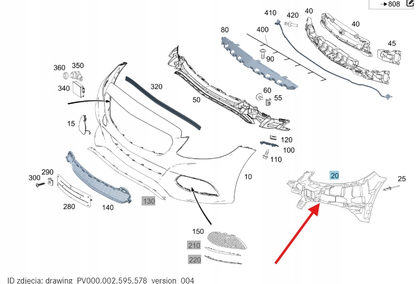 ŚLIZG UCHWYT ZDERZAKA PRAWY PRZÓD MERCEDES C klasa W205 OE A2058855602