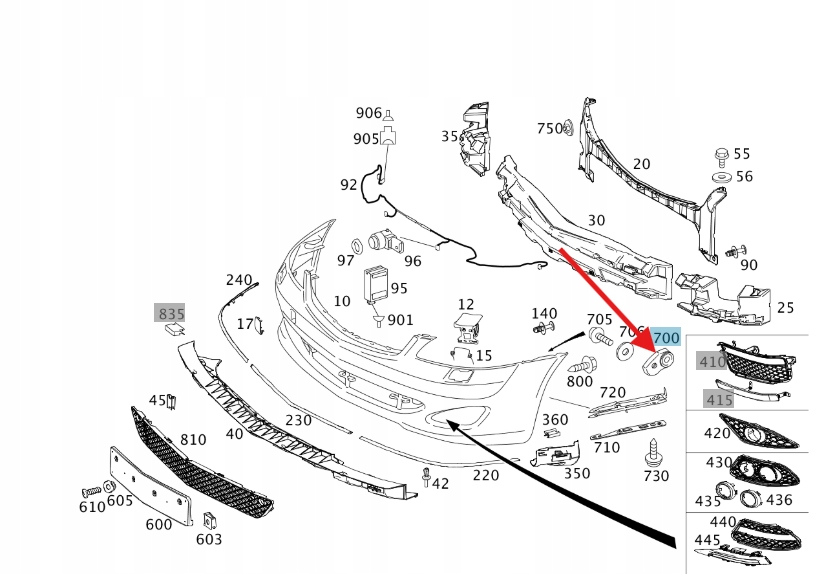 ŚLIZG UCHWYT ZDERZAKA PRAWY PRZÓD MERCEDES S klasa W221 OE A2218800230