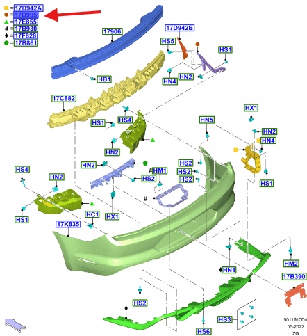 ŚLIZG ZDERZAKA LEWY TYŁ FORD MUSTANG 2017- OE 2263529 _ JR3B-17F767-AC
