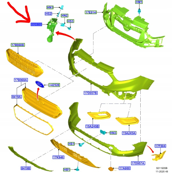 ŚLIZG ZDERZAKA PRAWY PRZÓD FORD TRANSIT CUSTOM 2018- 2210859 _ JK21-17D958-AC