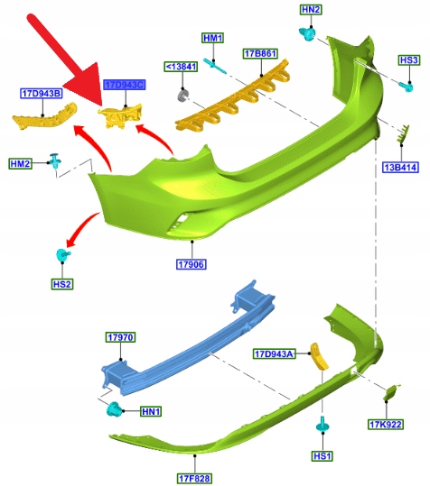 ŚLIZG ZDERZAKA PRAWY TYŁ FORD FOCUS 2018- OE 2379793 _ JX7B-17D980-B1B