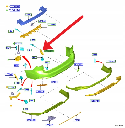 ŚLIZG ZDERZAKA TYŁ LEWY PRAWY FORD FOCUS 2018- 2200039 _ JX7B-F17B918-B1B