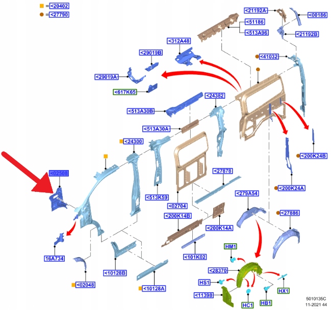 SŁUPEK A LEWY FORD TRANSIT CUSTOM MK1 2012- OE 2202053 _ JK21-V02509-AB