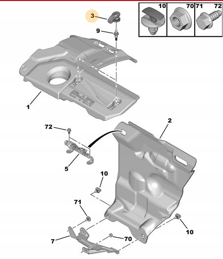 SPINKA POKRYWY SILNIKA CITROEN 1.6 HDi C3 C5 DS4 0137g0