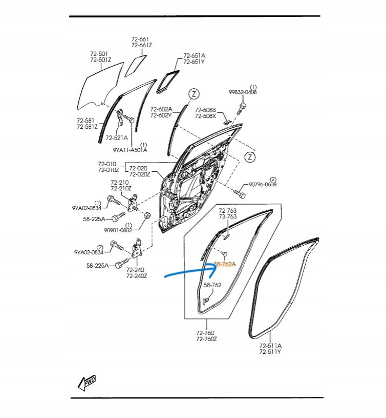 Spinka uszczelki drzwi - Mazda 2 DJ Mazda 3 BL_GS1M58762