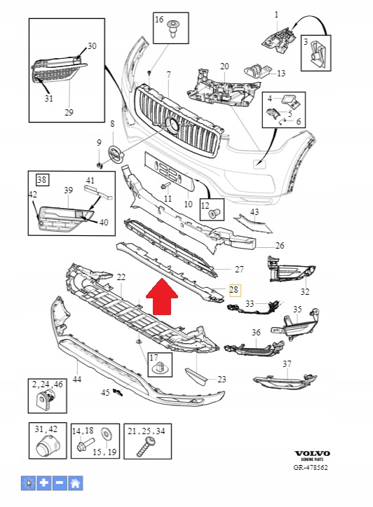 - SPOILER MOCOWANIE ZDERZAKA PRZÓD VOLVO XC90 2016- OE 31383825